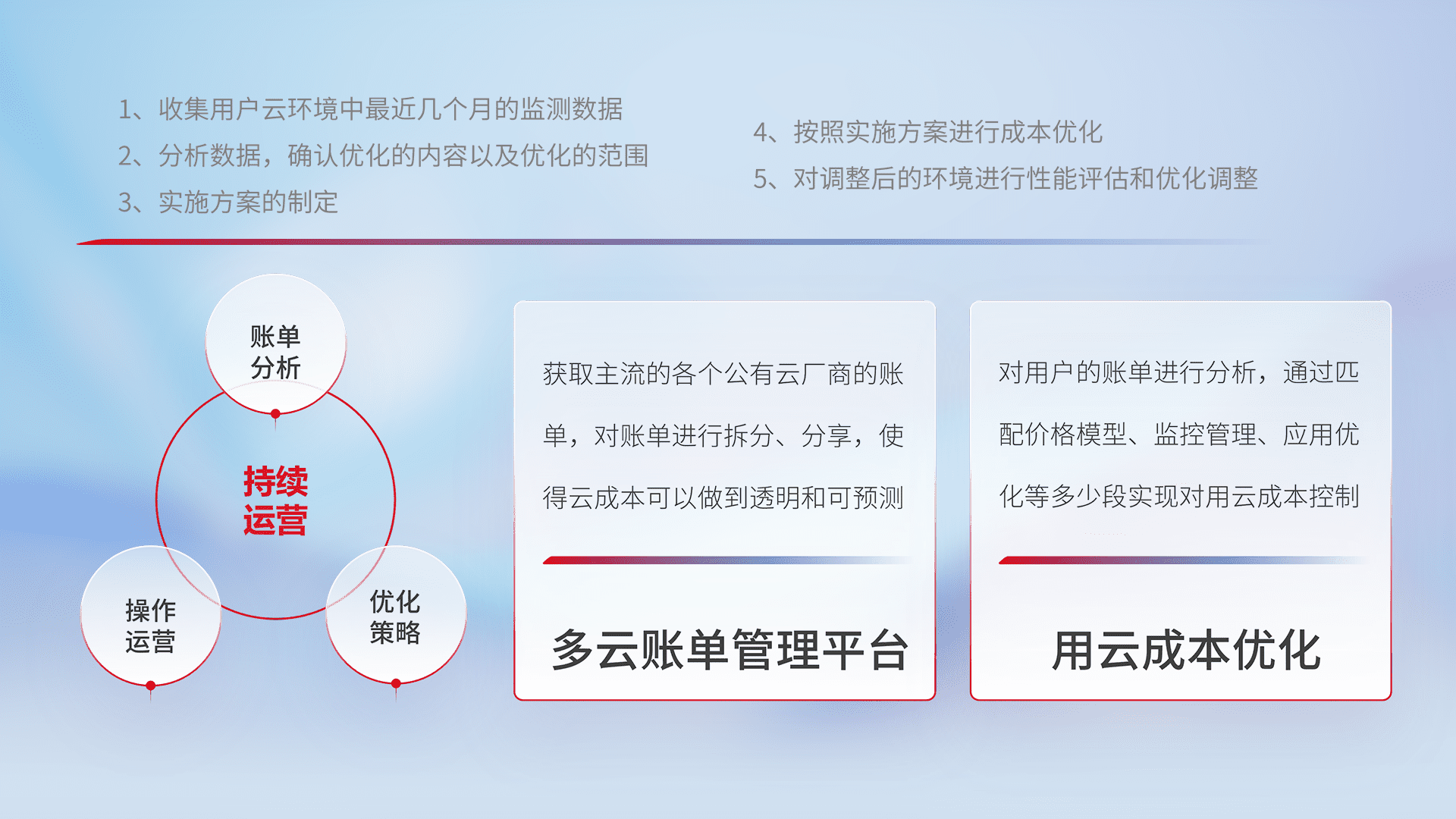 运用智能化工具分析云资源,,,提供日常费用可视化工具,,,,自动账单拆分,,,,成本优化云上费用,,,,降本增效。。